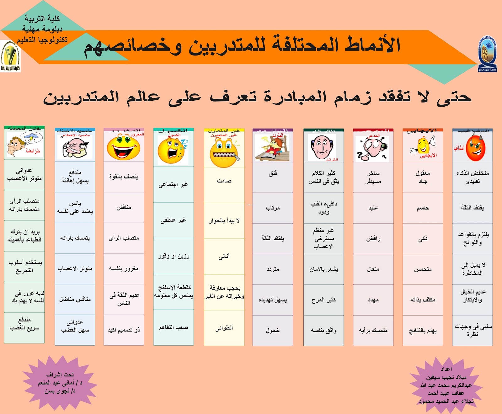 مذكرة اساليب تدريبية قسم مناهج وطرق تدريسالهدف / معرفة انماط المتدربين وخصائصهم
